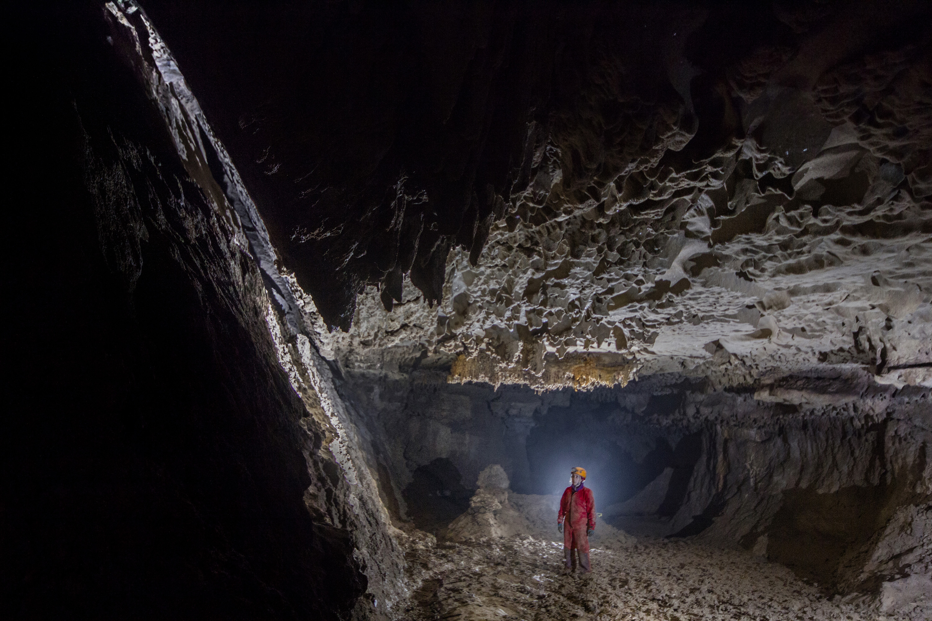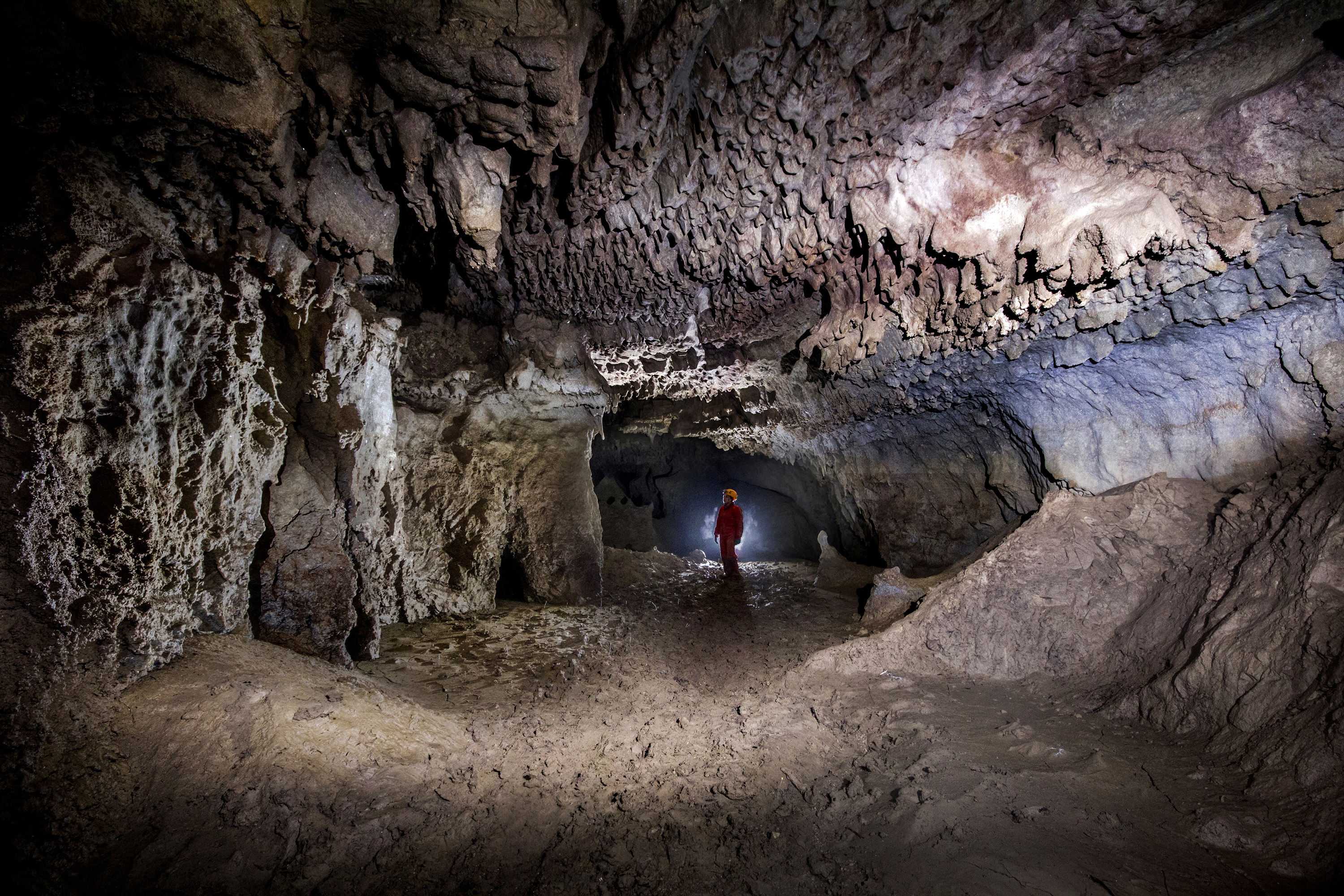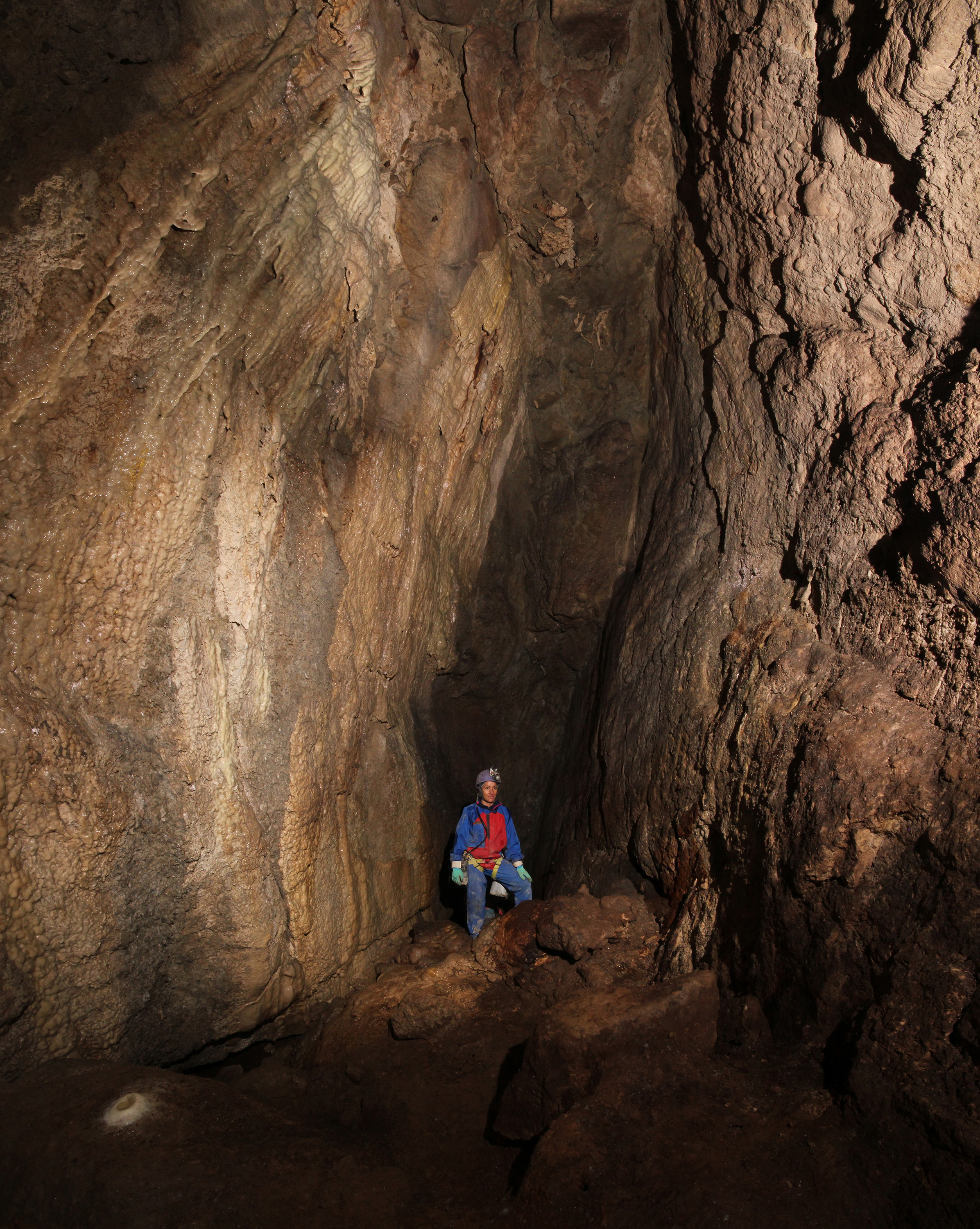Sala di interstrato nella Grotta Risorgente del Rio Basino.