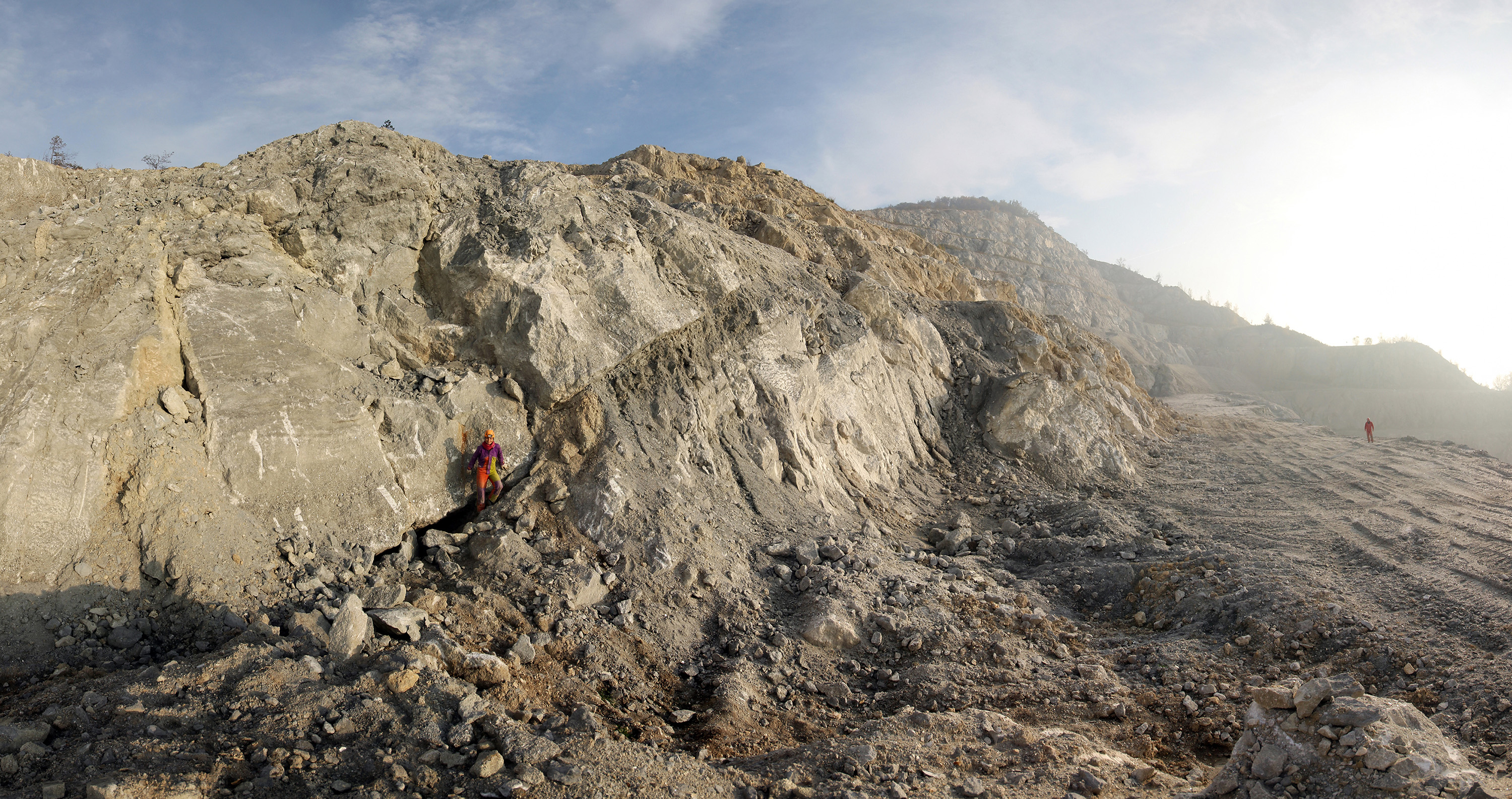 Discesa dalla Grotta I nei gradoni decapitata dalle galleria di cava.