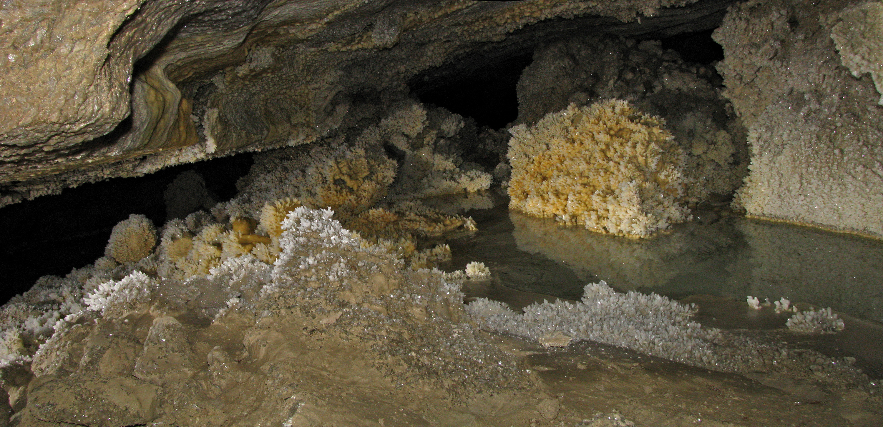 Infiorescenze gessose nella Grotta Risorgente del Rio Basino.