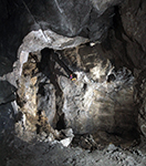 Sala di crollo e condotta fossile nel tratto di più recente esplorazione nella Grotta del Re Tiberio.